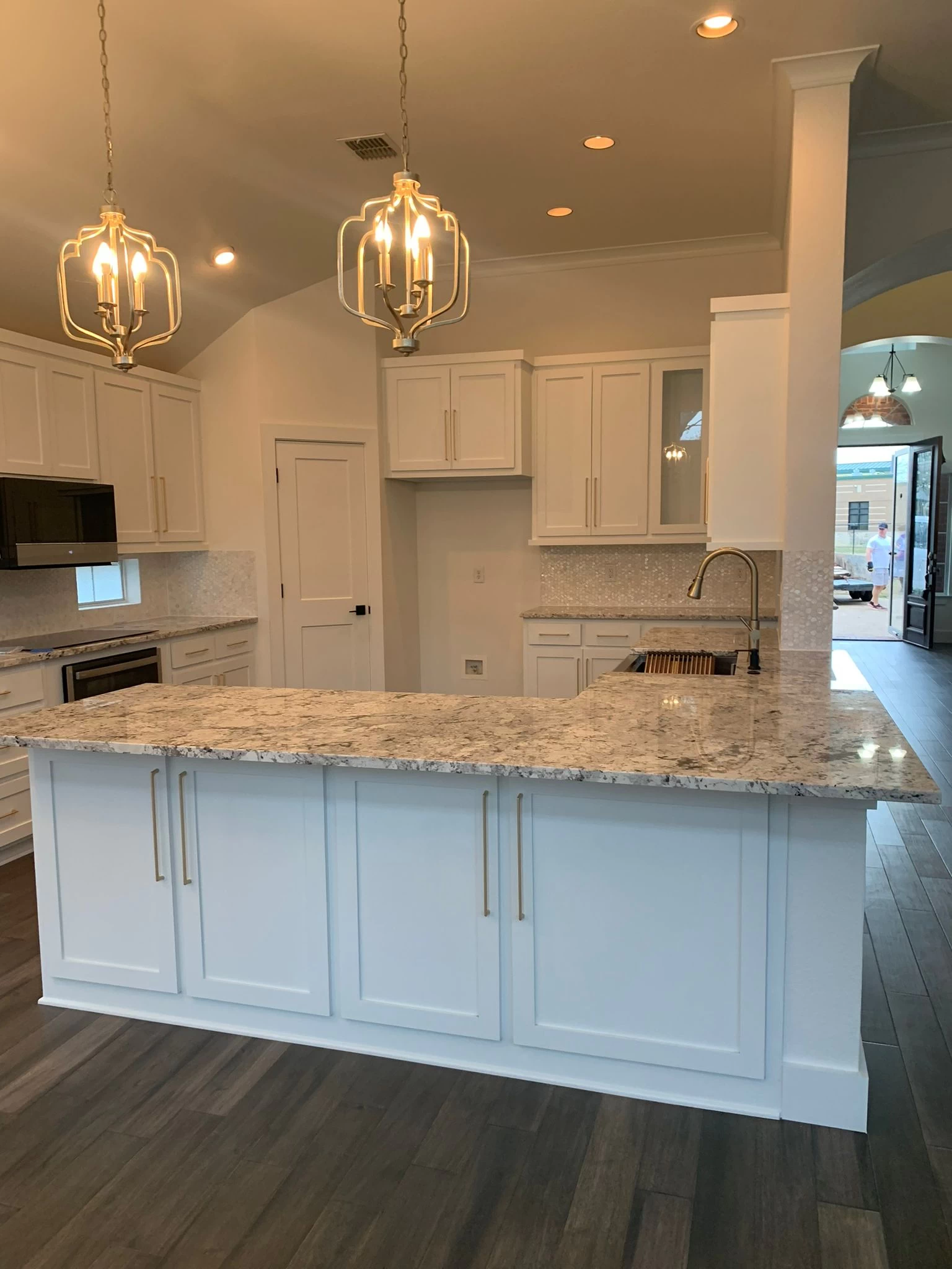 - Luxury Islands: Expansive granite and quartz islands with waterfall edges that double as dining areas.