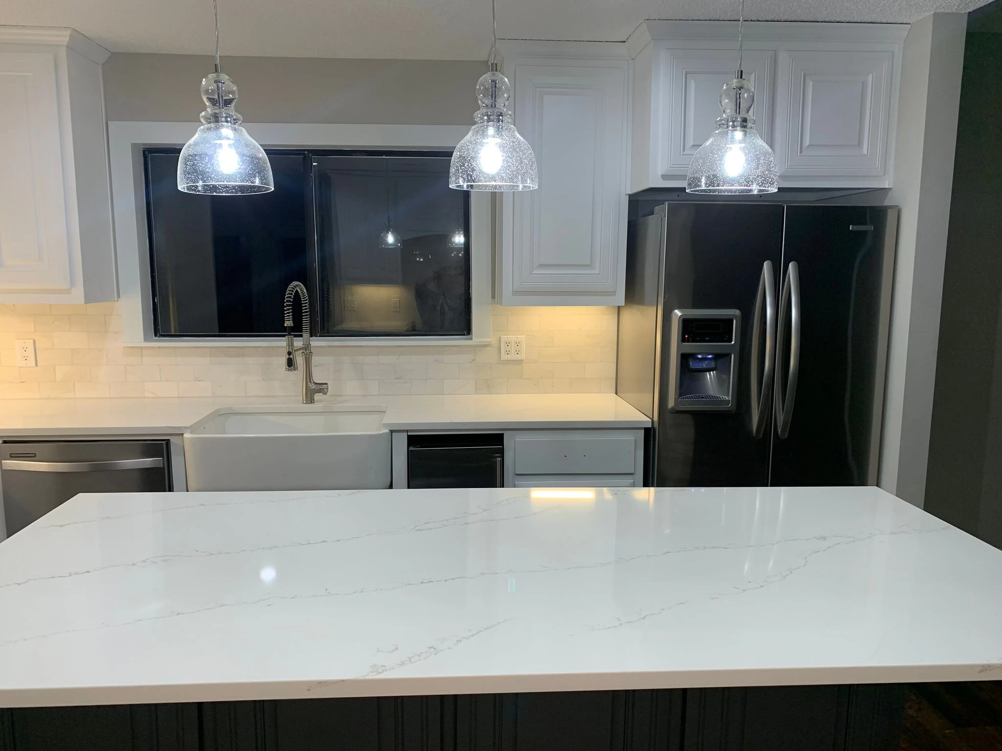 Every installation you see here was measured, fabricated, and installed by our team. From kitchens with bold granite islands to elegant marble vanities and statement-making fireplaces, we’re proud to share the results of our work.