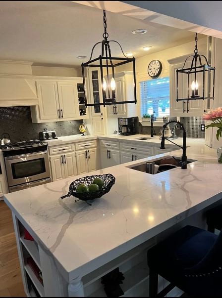 - Modern Quartz Surfaces: Low-maintenance quartz with clean, polished finishes — perfect for busy families.